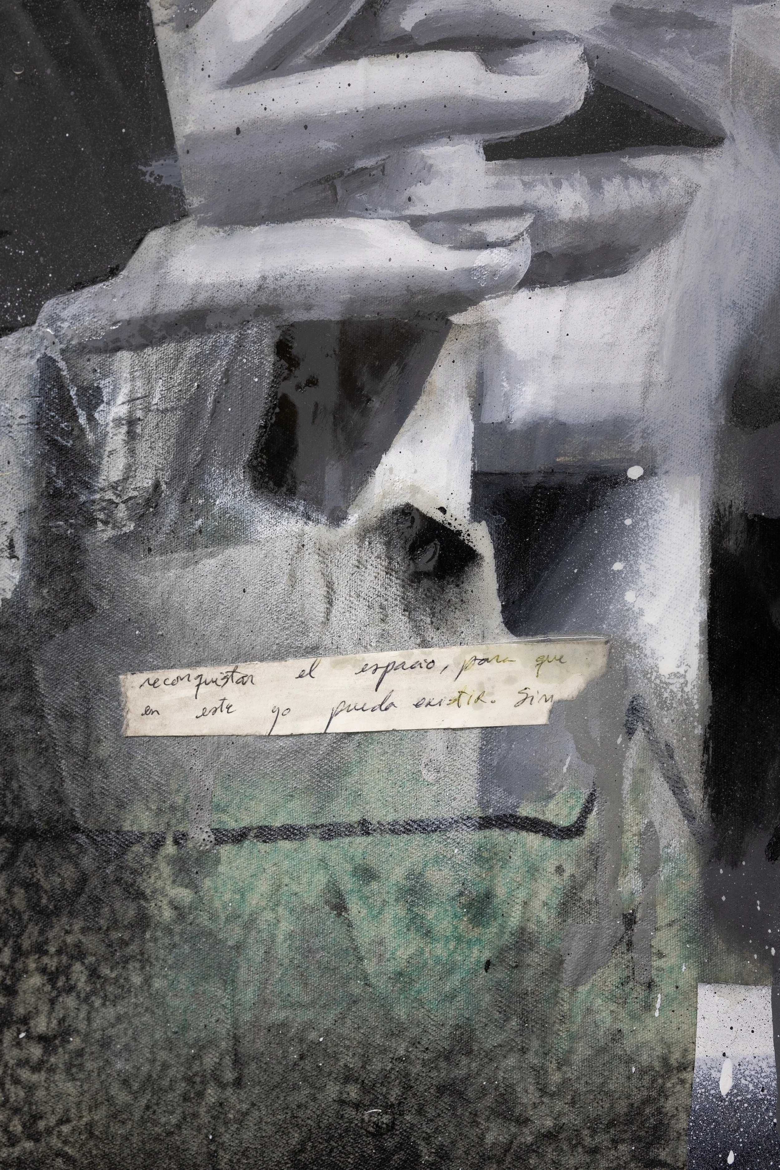 Tinta, plástico, resina epoxi, pintura acrílica y spray sobre tela